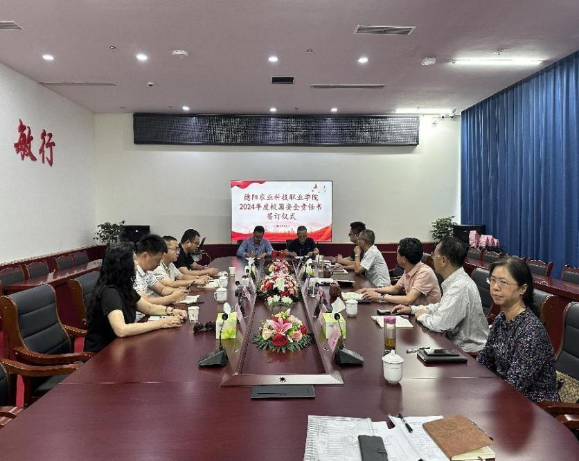 5月23日上午,学院在图书馆204会议室举行德阳农业科技职业学院2024年度校园安全责任书签订仪式。