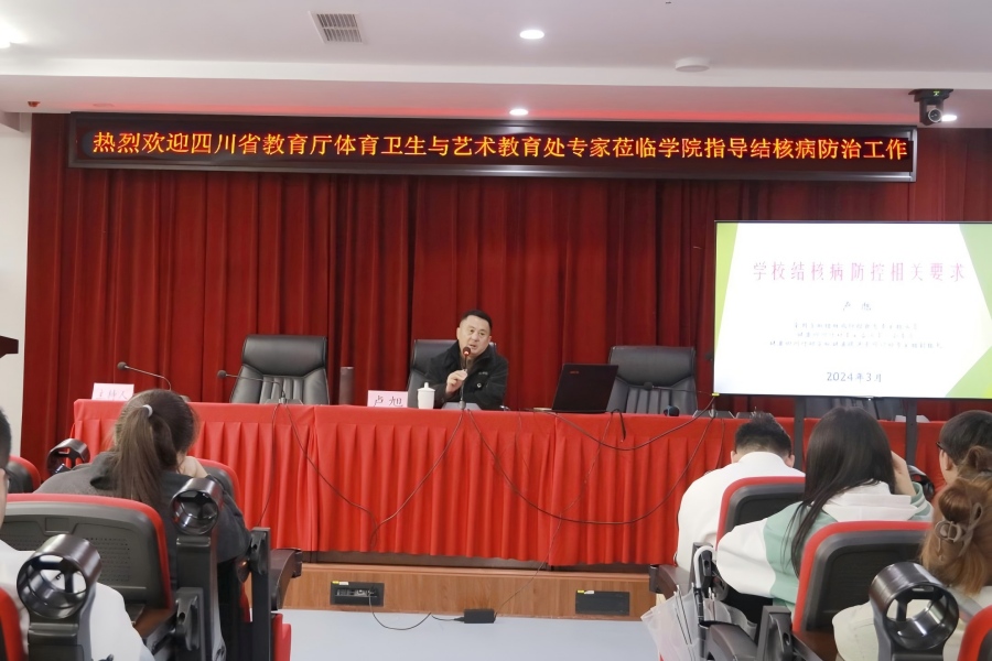 2024年3月12日下午,学院邀请教育部学校结核病防控专家组成员、四川省教育厅体育卫生与艺术教育处专家卢旭,就结核病防治工作开展专题培训讲座。讲座由院长助理兼后勤处处长钟雷主持,学院全体辅导员和部分学生代表参加。