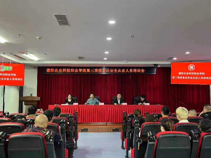 “迎中秋,庆国庆”,为给师生提供“安全、营养、健康、热乎、可口”的饮食,确保2023年中秋节、国庆节期间食品安全工作有序进行,切实保障放假期间在校师生的健康安全,德阳农业科技职业学院后勤处于2023年9月28日上午组织召开了第三季度食品安全从业人员培训会。副院长陈安体,后勤管理处处长钟雷,食品安全管理员杨星,食堂、商铺及超市从业人员参加了此次会议。