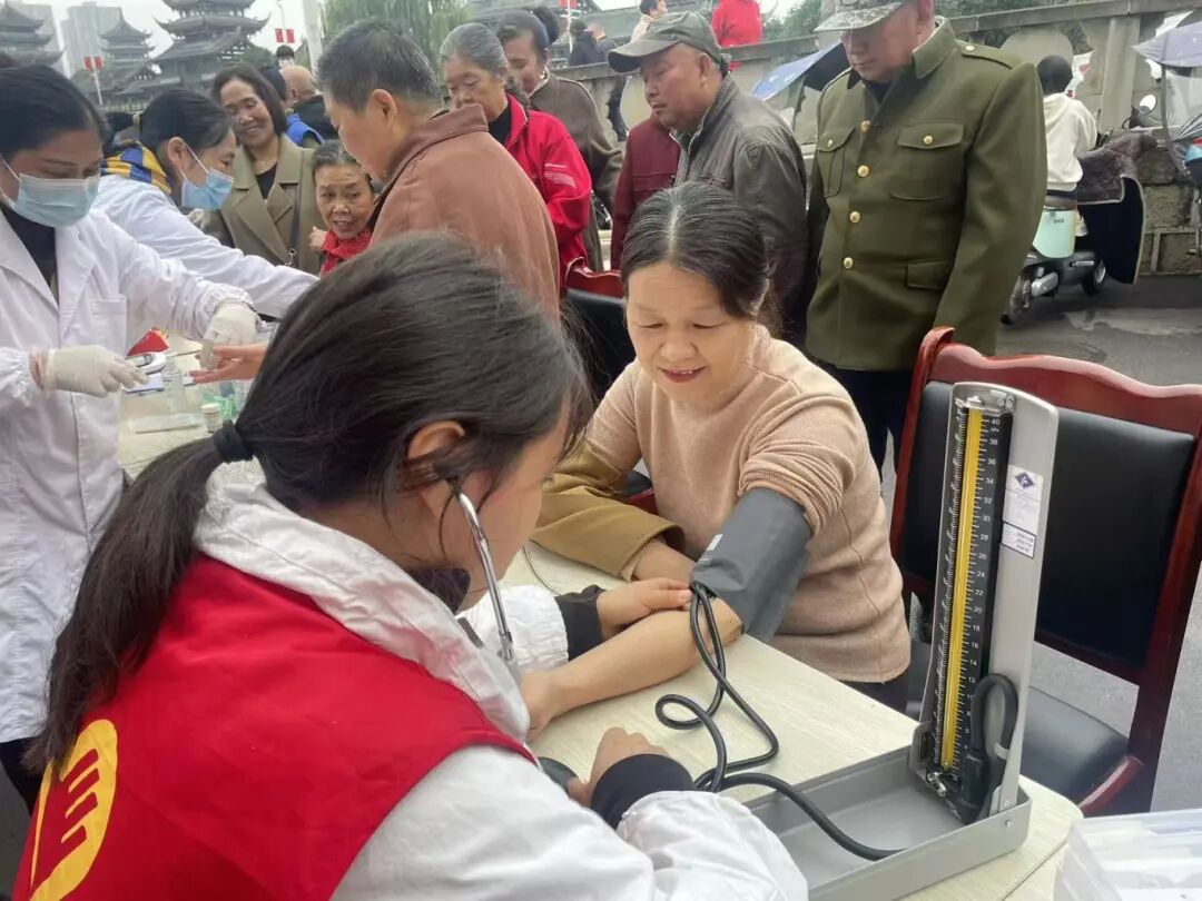 下午,卫生与健康学院依托专业优势,组织师生志愿者走进罗江区万安镇景乐社区,开展“重阳送健康,陪伴暖人心”社区敬老服务活动,以“基础健康服务 + 互动陪伴环节”的组合形式,为社区老年人提供医疗保健咨询和陪伴服务。