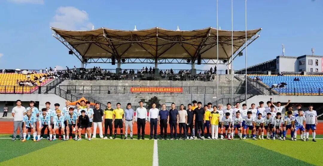 10月15日下午的阳光斜洒绿茵场,绵阳城市学院足球队与我校足球队展开了一场充满竞技活力与友好氛围的对决。学校副校长彭庆国,分管艺体学院校领导董振伟,教学事务部副部长袁忠,艺体学院院长雷湃、副院长董一廷到现场加油鼓劲,全程驻足观赛;绵阳城市学院现代服务学院詹廷君院长亦亲临现场指导,共同为两校体育交流与教学发展助力。