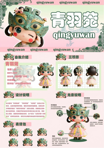 特别值得一提的是,部分作品如龙玉婷同学的《青羽苑——三星堆IP形象设计》,将古蜀文明元素融入农业品牌塑造,成功拓展了农业文化遗产表达的边界,体现了跨学科、跨文化的设计思维。