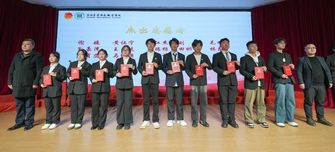 ▲ 校长助理杨建、董振伟为“2025年度志愿服务新星”获奖同学代表颁奖