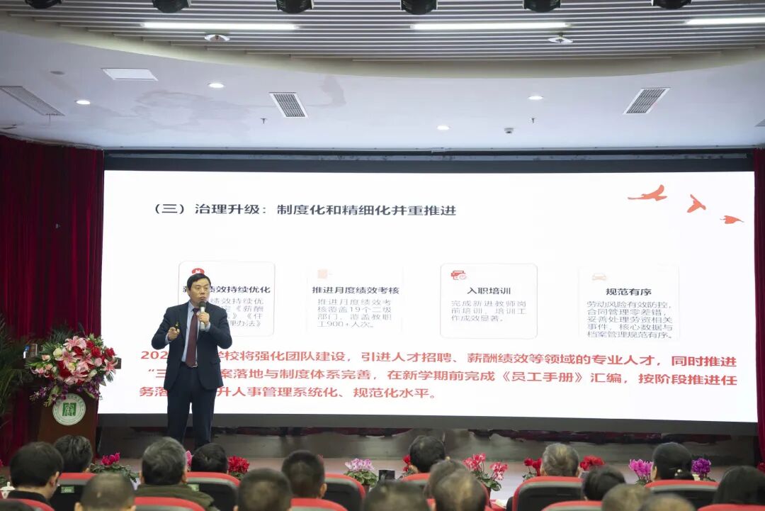 这次大会既是对2025年工作的全面回顾与总结,更是对2026年新征程的动员与部署。全体教职工要以此次大会为新的起点,继续保持奋发有为的精神状态,凝心聚力、真抓实干,以更加昂扬的斗志、更加务实的行动,共同为推动学校建成特色鲜明的高水平职业院校作出新的更大贡献。