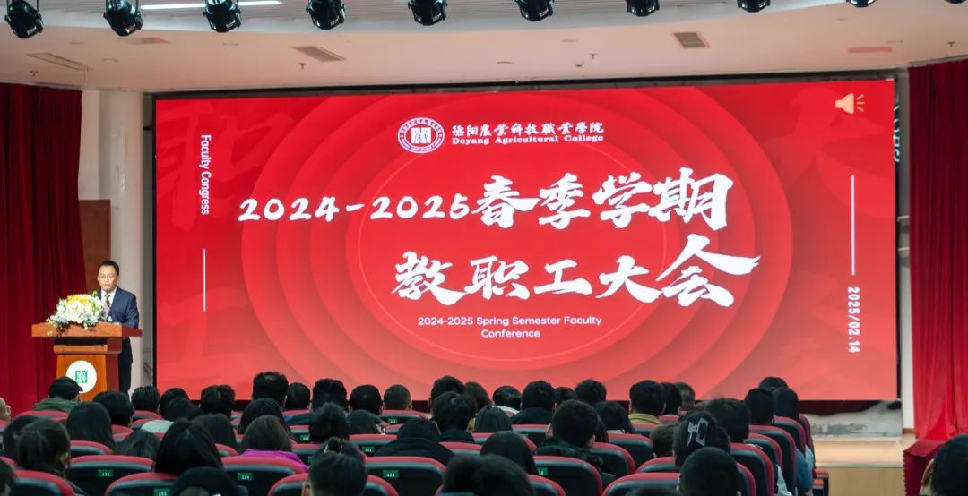 一年春作首,万事行为先。春节的热闹犹在耳畔,暖春的序曲已然奏响。2025年2月14日,德阳农业科技职业学院2024-2025学年度春季学期教职工大会在学术报告厅隆重召开。2024年,学校以“闯”的锐气、“创”的劲头、“干”的担当,交出了一份高质量发展的亮眼答卷。此刻,校领导班子与400余名教职员工斗志昂扬、神采奕奕,齐聚一堂,共话2025年“提质培优”新蓝图,共谋“迎评促建”新篇章。
