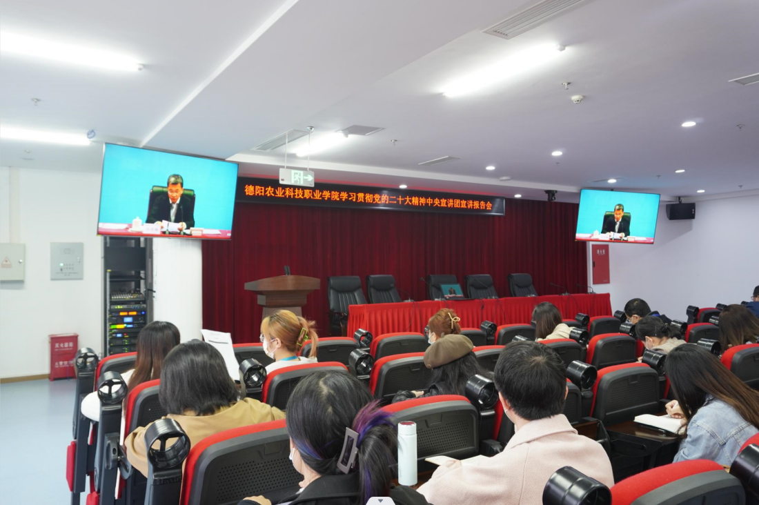 2022年11月3日上午,德阳农业科技职业学院全体中层以上干部、思政课教师、辅导员,集体观看了学习贯彻党的二十大精神中央宣讲团报告会。