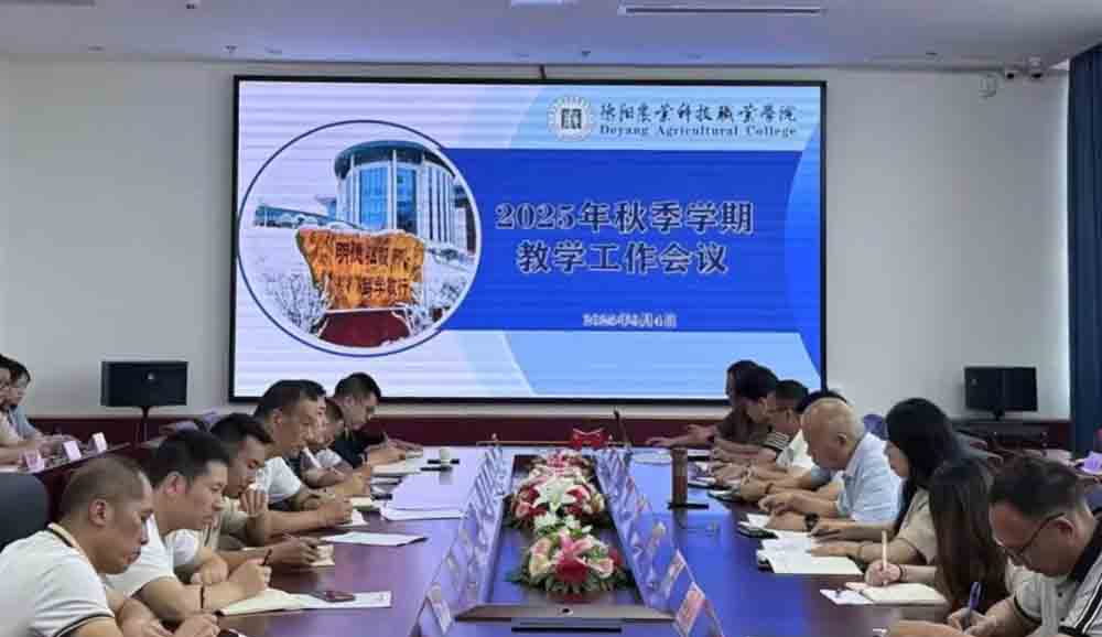 9月4日上午,德阳农业科技职业学院2025年秋季学期教学工作会议,在图书馆206会议室成功召开。院领导彭庆国、朱克永,教学事务部副部长出席会议,各教学单位负责人、办公室主任、教研室主任及教学事务部全体人员参会,会议由教学事务部副部长徐磊主持。本次会议聚焦“总结春季成效、破解教学瓶颈、部署秋季任务”三大核心,为秋季学期人才培养工作锚定方向、明确路径。