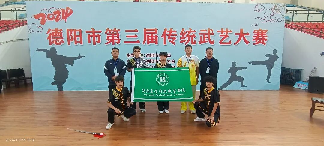 本次大赛是由德阳市体育局主办,德阳市武术协会承办,该赛事规模空前,吸引了来自德阳市各高校和武术届名流参加。我校吴浩与刘晨阳两位老师精心筹划,提前做好队员的选拔和训练工作。运动员吃苦勤练,善于钻研技术要领,在关键点上下功夫,把传统武术的技艺特点发挥的淋漓尽致。
