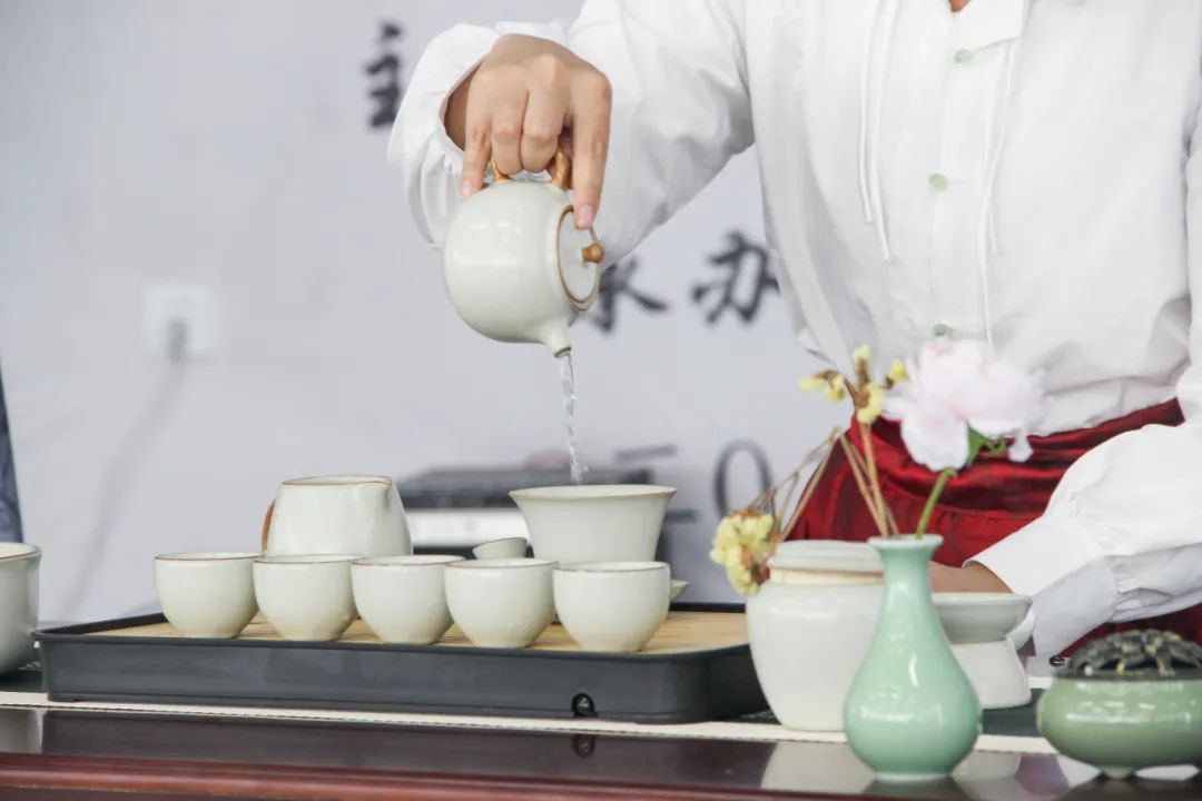 茶香四溢,乐声轻柔……这里是茶艺师技能比赛现场,由14名选手组成的7支队伍正在同台竞技。参赛选手们充分展示出娴熟优雅的技艺,营造了茶美、器美、水美、形态美、意境美的浓厚氛围,展现出各具特色的茶艺演绎。从鉴赏香茗(赏茶)到悬壶高冲(冲茶)再到品啜甘霖(喝茶),不仅弘扬了中国茶文化,还展示了德阳农业科技职业学院学生的文化底蕴和艺术修养。精湛的技艺打动了在场的领导,折服了评委,感染了观众。