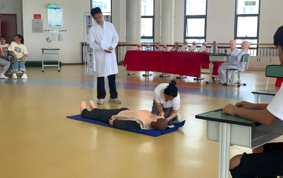 紧接着到健康管理师技能比赛的赛场,该赛场由卫生与健康学院承办。有12名选手在初赛中脱颖而出,他们精湛的CPR技能和婴儿海姆立克急救法技能,不仅展现出了健康管理师应有的专业素养和技能水平,还传递了对健康事业的热爱和执着。他们凭借娴熟的操作技能、沉着稳定的发挥,有序完成了各项程序要求,提升了护理学专业学生的理论知识、护患沟通和人文关怀、临床思维和决策能力、紧急救护能力、临床常用护理操作执行能力等方面的综合素质,充分展现护理技能人才的风采。