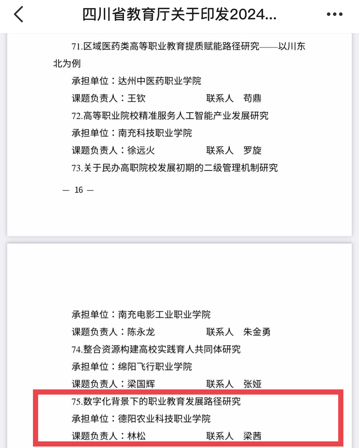 课题立项传捷报,科研引领促发展——德阳农业科技职业学院成功立项2024年度教育政务调研课题