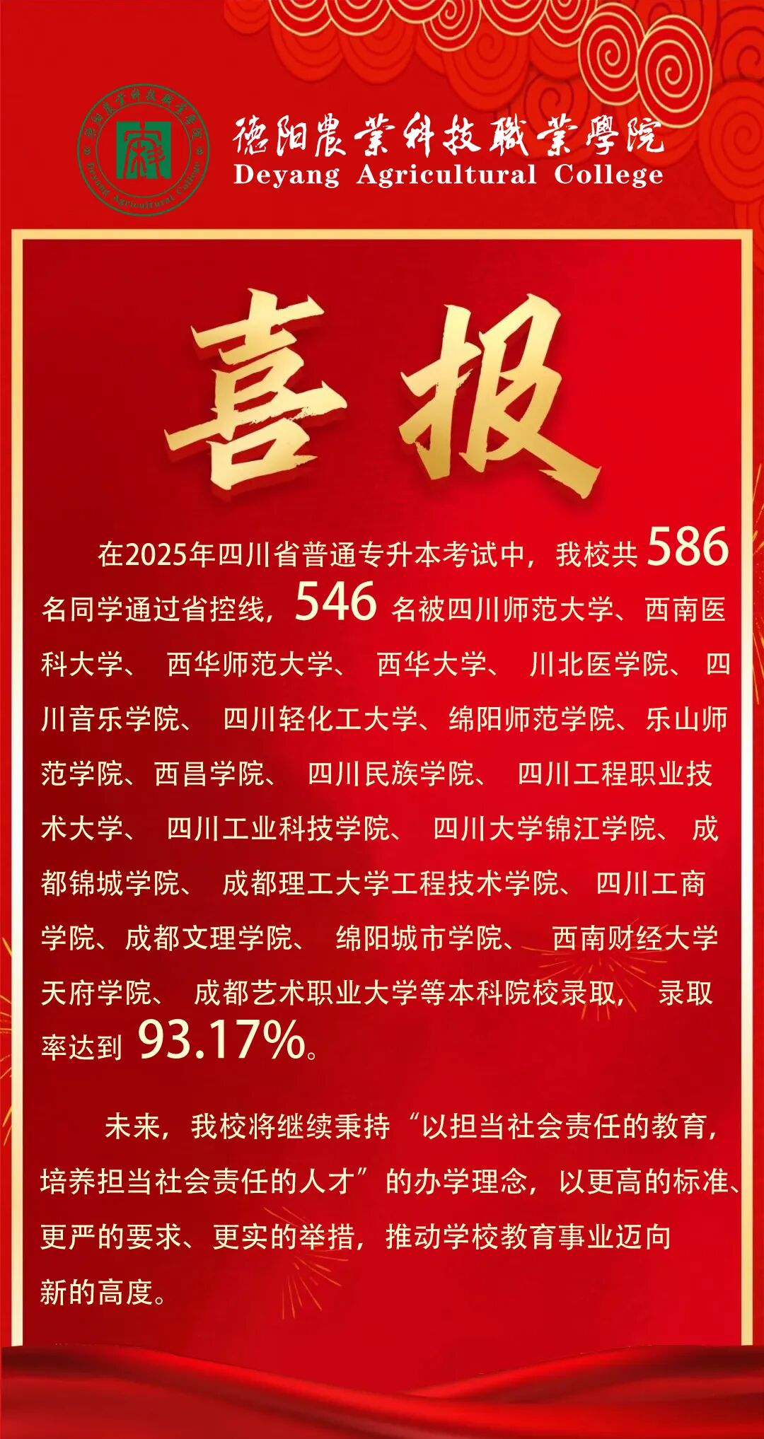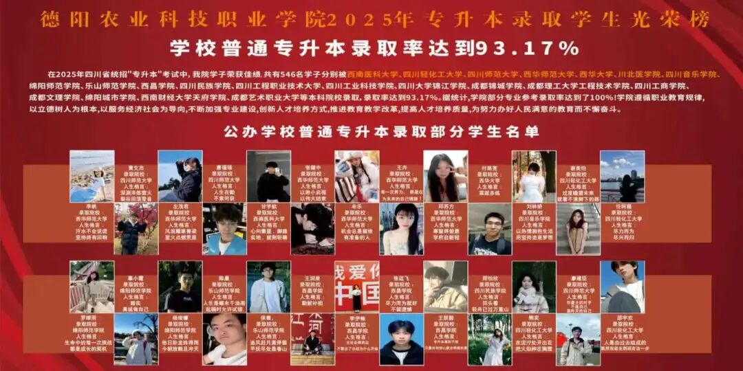 办学以来,德阳农业科技职业学院高度重视学生学历提升,为学生提供了多元化、全方位的学历进阶通道,助力每一位学子实现更高层次的学业目标,圆梦本科。