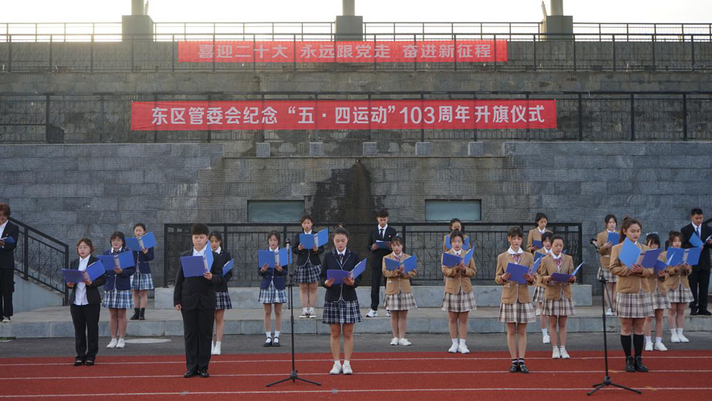 为进一步弘扬爱国主义精神,激发广大师生的爱国主义情怀。我院举行“喜迎二十大 永远跟党走 奋进新征程”为主题的五月升旗仪式。党委副书记、纪委书记、东区管委会主任倪霞教授、东区管委会副主任吴玲以及各部门负责人、学工系统全体老师、部分入党积极分子和各学院学生代表约600人参加了仪式。仪式由何林贵处长主持。